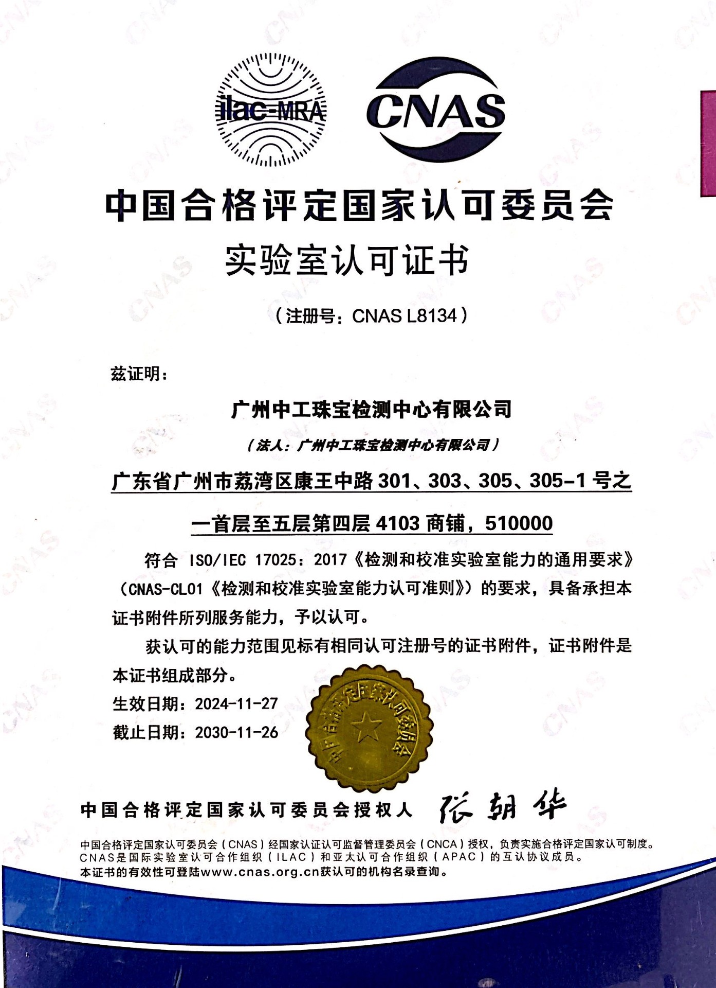 本中心是经质量技术监督局认证并获得中国国家认证认可监督管理委员会资质认定及计量认证证书、中国合格评定国家认可委员会认可的国家珠宝检测机构,并得到国际实验室认可合作组织(ILAC-MRA)认可的权威实验室,凭借其卓越的检测技术、深厚的专家团队和丰富的实践经验,赢得了广大消费者和社会各界的广泛认可和赞誉,被国家授权邀约对冬季运动会奖牌用玉进行专业检测,是业内名列前茅的检测实验室,而本中心将继续秉持着初心,为珠宝玉石检测事业的发展,不断贡献力量。